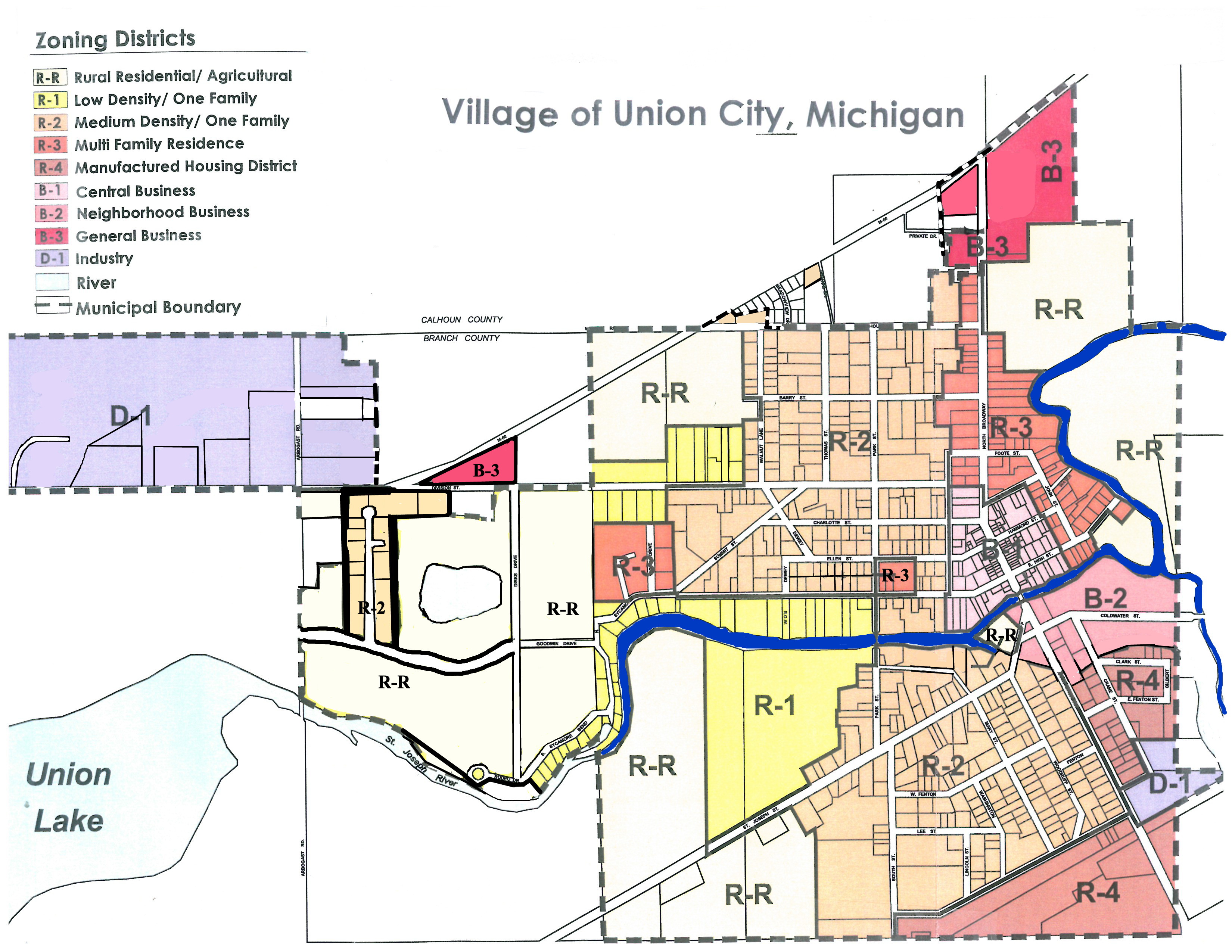 The Village of Union City Zoning Map can be viewed here: